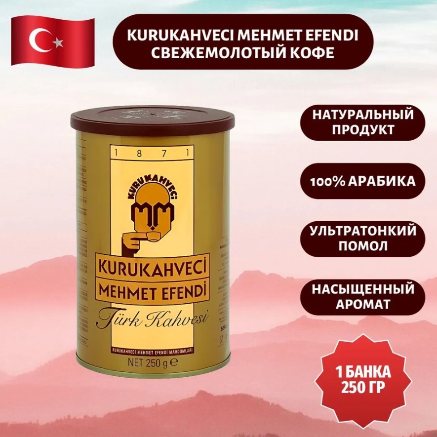 Кофе молотый Kurukahveci Mehmet Efendi Турецкий Арабика 100% 250 гр. 1шт.