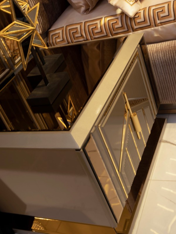 Использование благородных оттенков бежа, золота и слоновой кости создаёт атмосферу утончённой роскоши. Такой гарнитур станет главным акцентом спальни и подчеркнёт стильный вкус владельца.