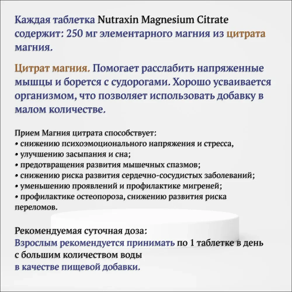 | Вид пищевой добавки | магний цитрат турция; Nutraxin Magnesium 250 mg; магний цитрат таблетки турецкий |