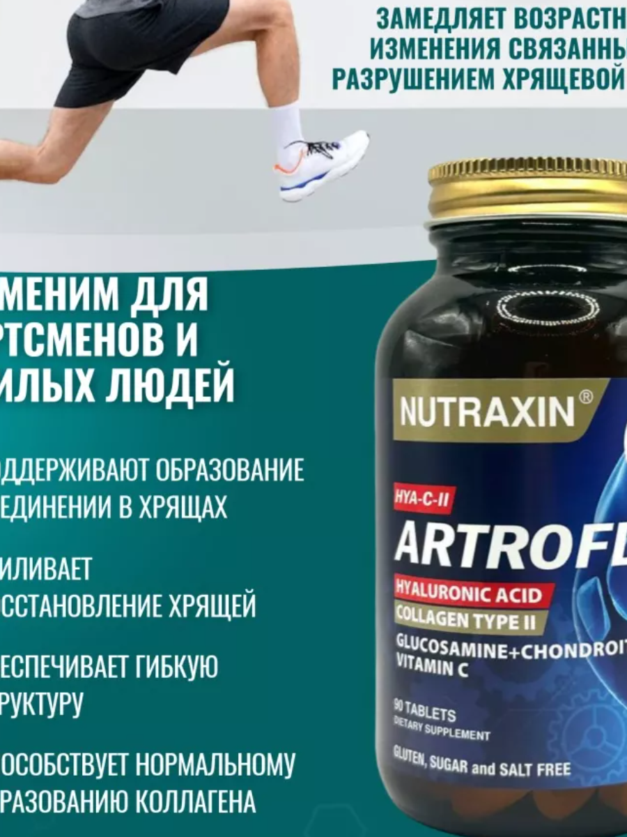 Artroflex от Nutraxin — это комплексная пищевая добавка, разработанная для поддержки здоровья суставов, хрящей и связок. Этот уникальный состав содержит витамины, минералы и специальные активные ингредиенты, которые помогают укрепить и восстановить суставные ткани, снижая дискомфорт и болезненность. Artroflex способствует улучшению гибкости и подвижности суставов, что делает его идеальным выбором для людей, ведущих активный образ жизни, а также для тех, кто сталкивается с проблемами суставов. Благодаря своему эффективному действию, Artroflex от Nutraxin помогает сохранять здоровье суставов на высоком уровне, обеспечивая комфорт и активность каждый день.