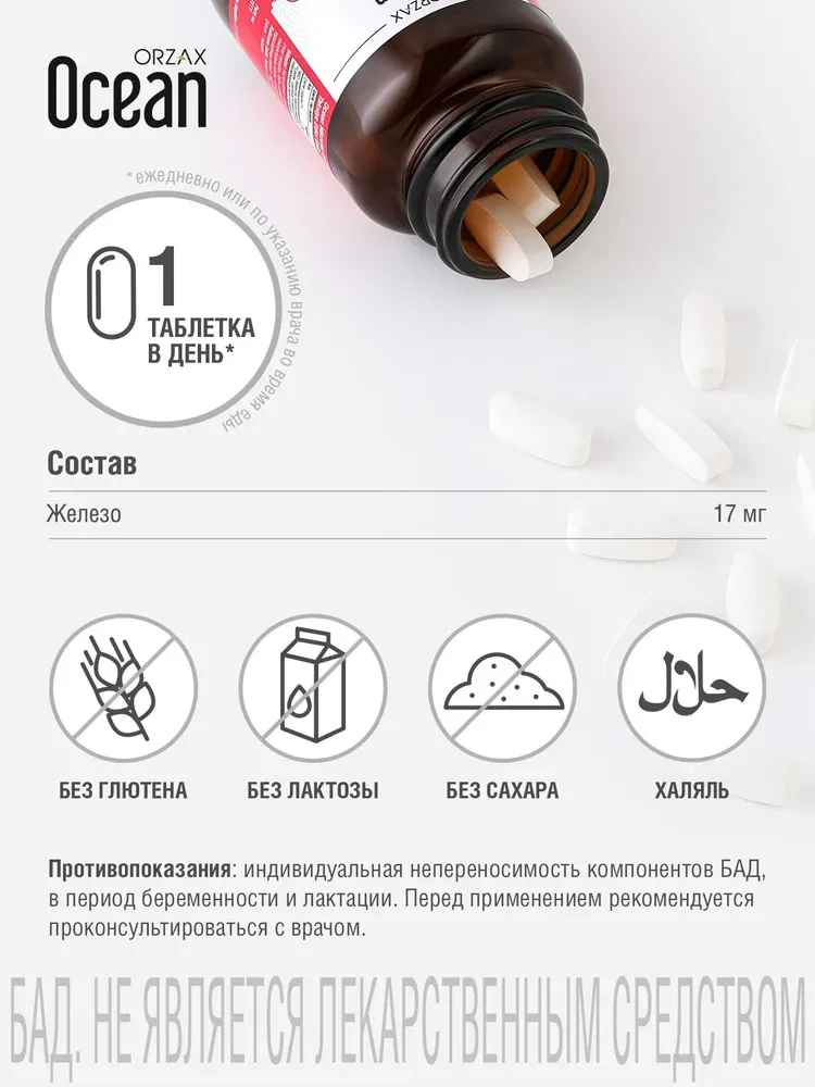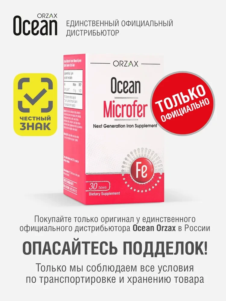 | Комплектация | Ocean Microfer Железо 30 таблеток |
