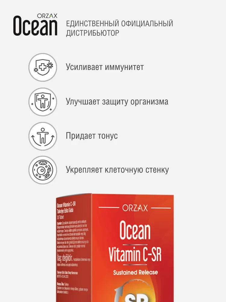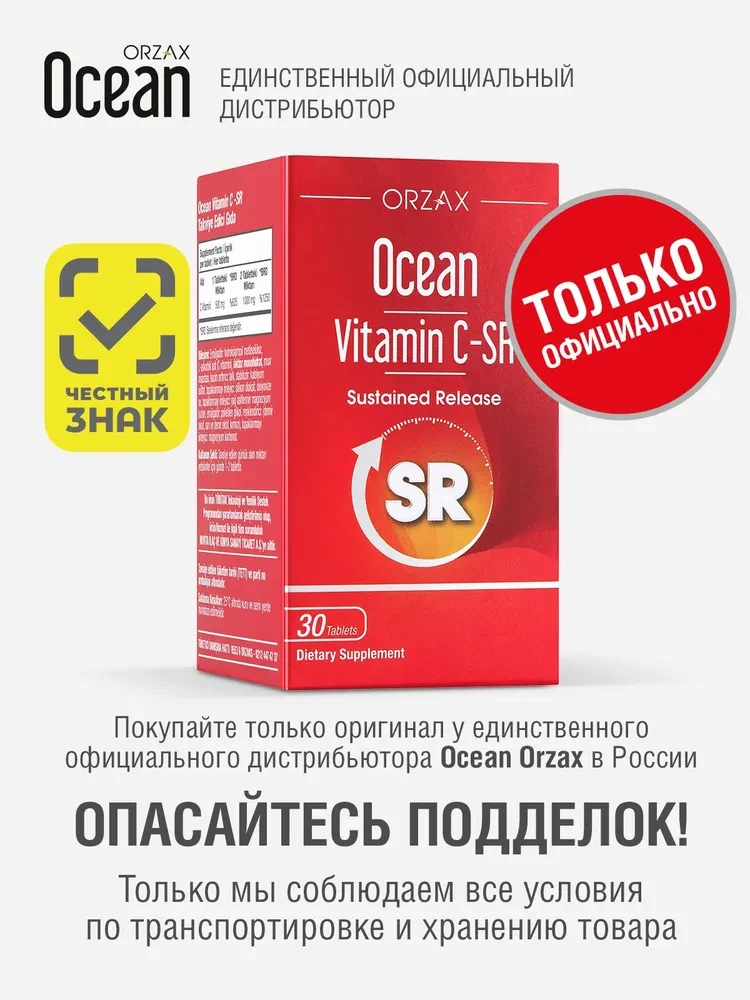 | Торговое наименование | биологически активная добавка к пище "Оушен Витамин С-SR" ("Ocean Vitamin C-SR") (таблетки, покрытые оболочкой, массой 1330 мг) |