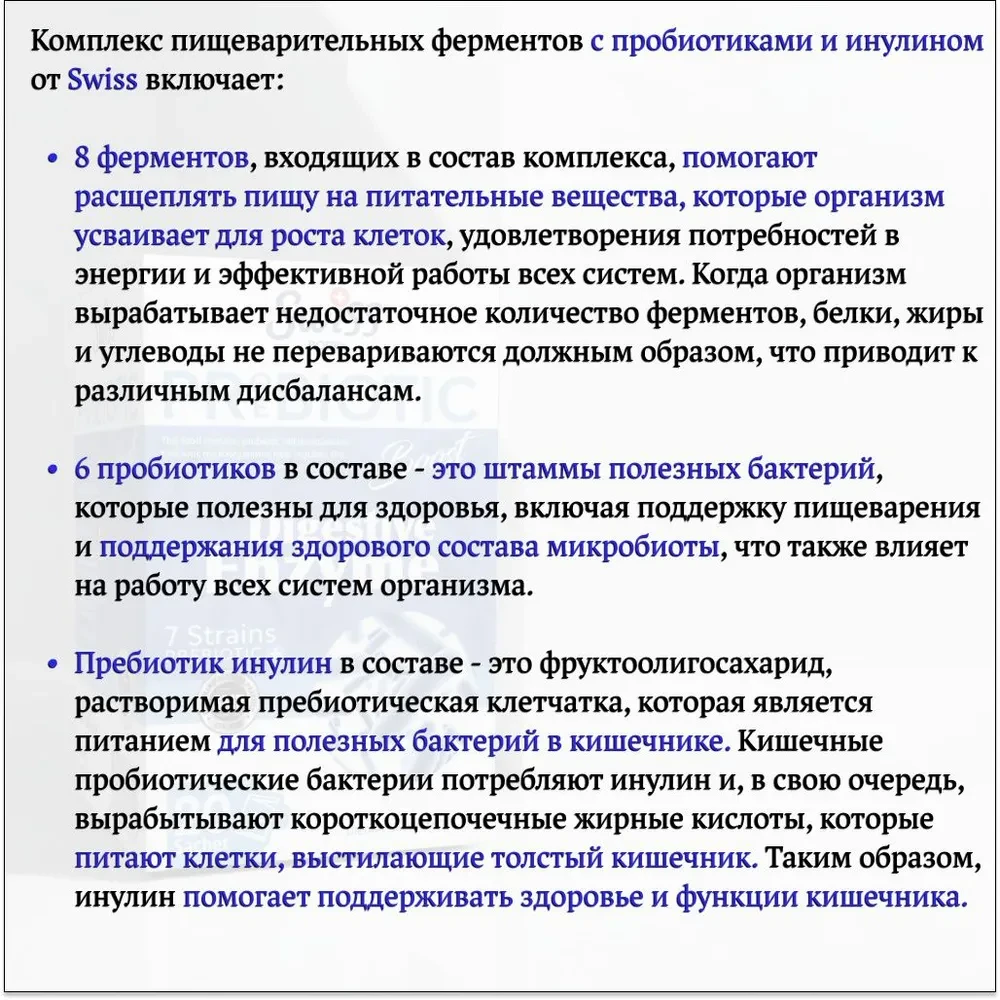 Комплекс пищеварительных ферментов с пробиотиками и инулином от Swiss включает: