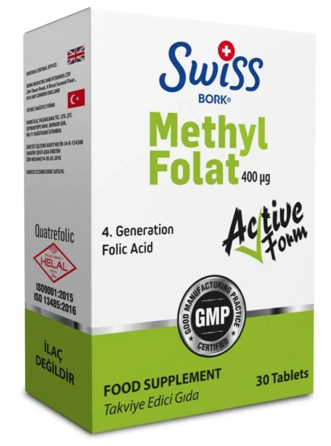 Метилфолат 400 мкг (Quatrefolic) - это пищевая добавка, содержащая активную форму фолиевой кислоты, известную как 5-метилтетрагидрофолат (5-MTHF). В одной таблетке содержится 400 мкг метилфолата. Описание: Метилфолат (Quatrefolic) является биологически активной формой фолиевой кислоты, которая легко усваивается организмом без необходимости преобразования, как это требуется для синтетической фолиевой кислоты. Свойства на организм: Поддержка сердечно-сосудистой системы: Метилфолат помогает снизить уровень гомоцистеина в крови, что важно для поддержания здоровья сердца и сосудов. Улучшение когнитивной функции: Способствует здоровью мозга, поддерживая нейротрансмиттеры и когнитивные функции. Здоровье беременных: Обеспечивает необходимую поддержку во время беременности, предотвращая дефекты нервной трубки у плода. Поддержка настроения и энергии: Участвует в синтезе серотонина и дофамина, что может способствовать улучшению настроения и увеличению уровня энергии. Поддержка клеточного деления и роста: Важен для синтеза ДНК и РНК, что необходимо для роста и деления клеток. Преимущества: Высокая биодоступность: Метилфолат является активной формой, которая быстро и эффективно усваивается организмом. Поддержка метаболизма: Участвует в метаболических процессах, таких как преобразование аминокислот и производство энергии. Безопасность: Подходит для людей с мутацией гена MTHFR, у которых возникают сложности с преобразованием фолиевой кислоты в активную форму. Универсальность: Подходит для широкого круга людей, включая беременных женщин и пожилых людей. Способы и время приема: Рекомендованная доза: Обычно рекомендуется принимать по 1 таблетке (400 мкг) в день, если не указано иное врачом. Время приема: Метилфолат можно принимать в любое время дня, желательно во время еды для лучшего усвоения. Продолжительность приема: Может приниматься на постоянной основе, особенно если есть показания или рекомендации врача. Перед началом приема любых добавок рекомендуется проконсультироваться с врачом, особенно при наличии хронических заболеваний или приеме других лекарств.